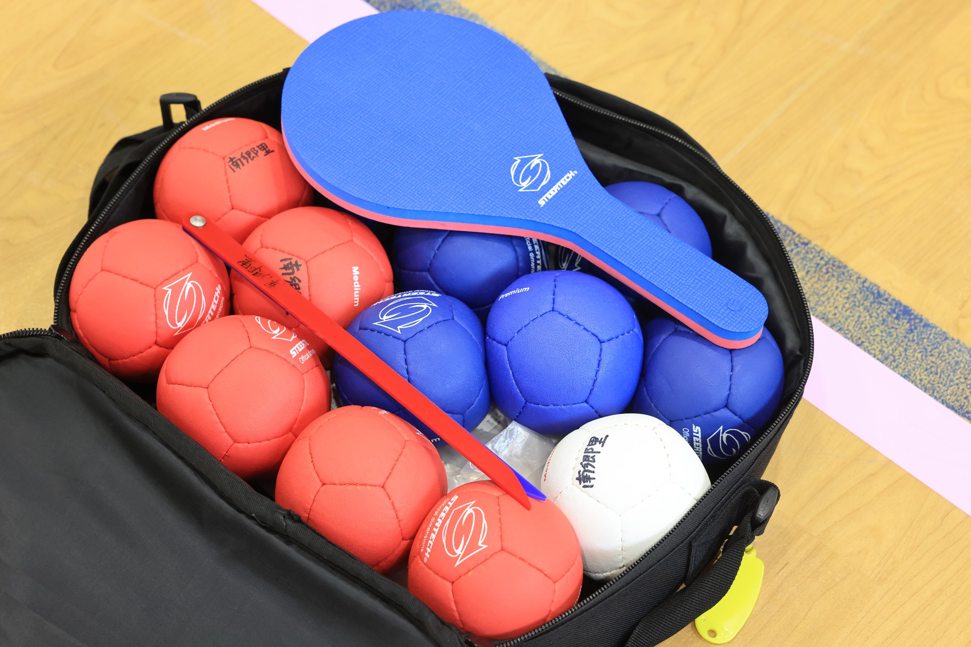 赤・青のそれぞれ6球ずつのボールを使い、白いジャックボール(目標球)にいかに近づけるかを競います。
