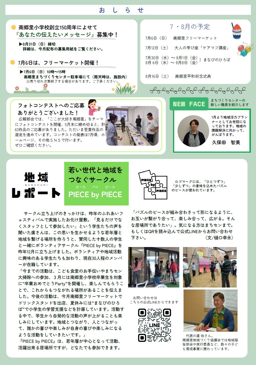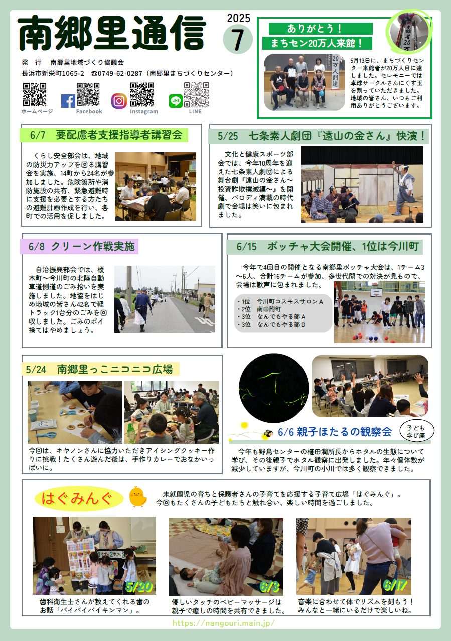 南郷里通信2025年7月号が発行されました 2025 7/02 トピックス 広報 2025年7月2日 画像をクリックすると拡大します。 トピックス 広報 この記事が気に入ったら いいね または フォローしてね! Follow Me よかったらシェアしてね! URLをコピーしました! URLをコピーしました!